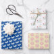 Dieses Trio aus flachem Blatt Papier zeichnet sich durch ein lustiges Blumendesign mit einem whimsical Garten und einem blauen, blauen Vogel aus. Das erste Blatt hat den kleinen blauen Vogel auf einem dunkelblauen Hintergrund. Das zweite Blatt ist der farbenfrohe Garten und der blaue Vogel, und auf dem dritten Blatt ist ein blassgelber Hintergrund mit einem rosa Blumenmuster.