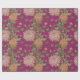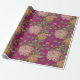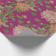 Umhüllungspapier mit Blumenmuster. Rosa und orangefarbene Chrysanthemen auf bordeauxrotem Hintergrund.