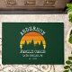 Rustikale Pinienbäume Sommer Retro Sonnenuntergang Familienname Hütte Wald Grüne Tür Matte. Personalisieren Sie Ihren Familiennamen, Standort, Jahr oder Datum und mehr.