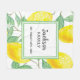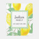 Juckes, köstliches, wasserfarbenes Zitronen in Gelb, Grün und Weiß. Weiß und grün mit Vorlagen für einen Familiennamen und ein Datum. Der Name ist in einem handgeschriebenen Stil geschrieben, schwarze Buchstaben.