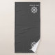 Ein wunderschönes personalisiertes Badetuch-Set mit Ihrem Familiennamen oder Bootsnamen. Mit einem speziell entwickelten nautischen Rad - Helm in Weiß auf Meeresgrau oder leicht ändern die Hintergrundfarbe zu Ihrem aktuellen Dekor. Die perfekte Ergänzung zu Ihrem Zuhause, Strandhaus oder Ferienhaus.