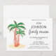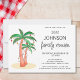 Planen Sie ein Familientreffen? Diese lustige Einladung zeigt Palmen, Luftballons und Lichter. Sie ist leicht anpassbar. Original-Wasserfarbe © Michele Davies.