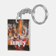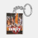 Cette porte - clé simple et élégante présente deux de vos photos personnelles, ainsi que le mot "famille" dans la typographie moderne blanche boho.