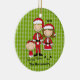 Ce sera un souvenir de tous les temps ! C'est une adorable famille habillée de tenues Père Noël rouges et de casquettes. Il a un arrière - plan vert clair avec des points verts foncés en rang. Il y a un papa, maman, et une petite fille. Découvrez les autres combinaisons familiales et ornements de notre magasin. ©Illustrations JW