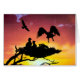 Deux poussins d'aigle attendent comme un parent vient de la chasse. Leurs silhouettes contrastent fortement avec le ciel enflammé du soleil couchant. Computer art par Kathie Miller