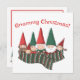L'avant de cette carte est imprimée avec une belle illustration d'une famille de gnomes enveloppée dans un foulard que la mamie est encore tricot. Sur le dos de la carte, on trouve une autre illustration d'une petite fille de gnome qui orne le casquette de grand-père gnome de lumières de Noël. Au fond, il y a beaucoup d'espace pour écrire vos salutations ou votre message. Le texte à l'avant de la carte est entièrement personnalisable.