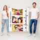 Family 3 Photo Template Personalized Script Fleece Blanket features your family name with three of your favorite photos below and the text "family" in elegant calligraphy script accented with cute love hearts. Make the perfect keepsake for family members. Custom photo collage fleece blanket for Father's Day, Mother's Day, Grandparents Day, Christmas and birthdays. Personalize by editing the text in the text box provided. Designed by ©Evco Studio www.zazzle.com/store/evcostudio
