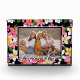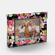 Dieses charmante Foto-Block zeigt Ihr liebstes Foto auf schwarzem Hintergrund mit weißen und rosa tropischen Plumeria-Blume und das Wort FAMILY in schicken weißen Schriftzeichen - Sie können es entfernen. Gut als Geschenk oder um Ihr Lieblings-Foto in Ihrer eigenen Zuhause zu zeigen.