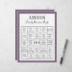 Genießen Sie dieses unterhaltsame Bingospiel auf Ihrer nächsten Wiedersehen. Finden Sie die Spiele aus Ihrer eigenen Familie, um viel Spaß zu haben! Lila und goldgekachelter Hintergrund.