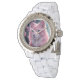 Hübsche rosa Blüten und skurrile Whiskys schmücken dieses puristische Uhrwerk.