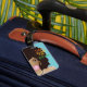 Dieses Design zeigt das Zitat "Catch Flights Not Gefühle" mit natürlicher Schönheit Haare mit einer geschichteten Halskette und goldenen Hoops, Poppen rosa Bublegum. Ideal für diejenigen, die Liebe zu reisen und einzigartig zu sein. Großartige Mädchen reisen Zubehör! Sichere Reisen!