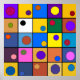 Poster mit farbiger, origineller Zeichnung im Op-Art-Stil, geeignet für ein Kinderzimmer.