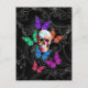 Fantasieschädel und farbige Schmetterlinge Postkarte