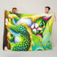 Diese Fleecedecke hat ein Katzenkreatur darauf.