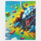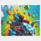 Diese Fleecedecke hat ein Fantasiewesen darauf.