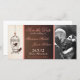 Diese Save the Date Hochzeitsfotos sind mit einem fantasievollen Vogelkäfig mit Wirbel und einem rosa Herz versehen, und zwei niedlichen Vögeln, in Schokoladenbraun, hängen an einem Elfenbeinhintergrund, texturiert mit verblasster Handschrift. Ein glänzendes, blassrosa Band trennt einen schokoladenbraunen Sidebar, der den Wortlaut der Hochzeitseinladung in Elfenbein und Rosa enthält. Die Einladungsworte, in abwechselnden Skripten und klassischen Serif-Schriftart, sowie das Foto der Verlobung von Paaren sind vollständig anpassbar.