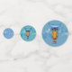 Dieser Tisch Konfetti hat eine fantasievolle bunt Eule mit einem gelben Körper, blauen Kopf und großen blauen Augen auf einem Hintergrund von Kreise und Strichen in verschiedenen Tönen von blau und grün.