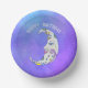 Diese Papierschale hat einen fantasieweißen Halbmond mit einem hübschen Party und ist mit farbenfrohen Formen in blauen und gelben Kreisen und Dreiecken geschmückt, und eine lila Schriftrolle auf einem lila Himmel mit weißen Sternen. Passen Sie den Geburtstagstext von Happy mit der Vorlage an.
