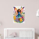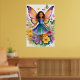 Poster eines jungen Mädchens mit lebhaften Schmetterlingsflügeln, umgeben von bunten Blume, die ein Gefühl von Magie und Laune ausstrahlen. Ihr Kleid spiegelt die Farben ihrer Flügel wider, die zu den hellen Schmetterlingen passen, die um sie herumflattern.