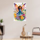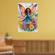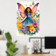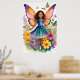 Poster eines jungen Mädchens mit lebhaften Schmetterlingsflügeln, umgeben von bunten Blume, die ein Gefühl von Magie und Laune ausstrahlen. Ihr Kleid spiegelt die Farben ihrer Flügel wider, die zu den hellen Schmetterlingen passen, die um sie herumflattern.