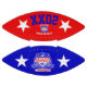 Hey Fantasiefußballkommissare. Übergeben Sie diese fantastische Fußballtrophäe an das Sieger-Team Ihrer Fantasiefußballliga, komplett mit dem Namen der Liga, dem Namen des Siegers und dem Jahr. Das rote, weiße und blaue Schild ist mit einem Fußball, einem Helm und Sternen geschmückt und auf beiden Seiten präsentiert.