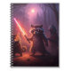 A whimsical fantasy scene set in a dark forest featuring a confident raccoon with a glowing pink and yellow saber, a cautious black cat with a dark sword, and a hooded owl holding a mysterious weapon. Bathed in moonlight with red-eyed intensity and dramatic purples and reds, this playful, cartoonish design blends adventure, sci-fi, and fantasy for imaginative animal art lovers.