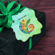 Dieses Set von Gefälligkeitsetiketten hat eine farbenfrohe Fantasieeidechse in grün, orange, gelb und blau mit großen runden Augen auf einem Ast mit einem grünen Blatt auf einem Hintergrund von gemischtem Blau und Grün. Passen Sie Ihren Text mit der Vorlage auf der Vorder- und Rückseite an.