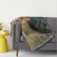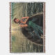 Diese Decke zeigt ein Fantasiebild einer Meerjungfrau, die in einem Kanu reitet und hinter ihr die Sonnenstrahlen trägt.