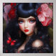 Portrait einer Niedlichen Blume Fairy Princess in schwarzem Kleid umgeben von farbenfrohen Blume und Schmetterlingen. Original Kunst von Gifts_AtTheCorner ©2023.