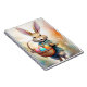 6,5 x 8,75 Notebook mit einem fröhlichen Kaninchen in einem blauen Outfit mit einem Korb gefüllt mit farbenfrohen, dekorierten Eiern. Der Hintergrund zeichnet sich durch sanfte Blumendetails und sanfte, warme Farben aus.