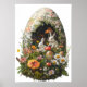 Grosses Osterposter mit einem großen Ostereier und niedlichen Tieren wie Osterhasen oder Kaninchen. Magische Fantasy Forest Blumenkunst mit Blume und bezaubernden Tieren. Alles Gute zu Ostern.