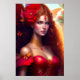 Portrait einer wunderschönen Fantasiefee mit roten Blume auf ihrem Haar. Original Kunst von Gifts_AtTheCorner ©2023.