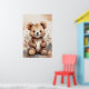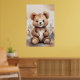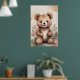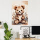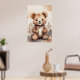 Poster eines niedlichen, flauschigen Teddybären, umgeben von sanftem, wasserfarbigem Laub, das ein sanftes und skurriles Ambiente verleiht. Warme Erdtöne und zarte Pinselstriche verstärken den liebenswerten Ausdruck des Bären.
