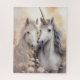 Das Puzzle aus zwei Einhörnchen, die in einem verträumten Feld mit sanften, pastellfarbenen Blume stehend sind. Ihre fließenden Mähne erwecken das Licht eines sanften Sonnenuntergangs und heben ihre majestätische Präsenz hervor.