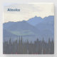 Blaue Berge, blaues Wasser am See, dunkelgrüne Bäume, rosa Kaminfeuer und bewölkt. Eine Darstellung des Sommers im äußersten Norden. Es erscheint auch der Text "Alaska" mit individualisierbarem Text. Moskitos sind nicht inbegriffen.