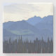 Blaue Berge, blaues Wasser am See, dunkelgrüne Bäume, rosa Kaminfeuer und bewölkt. Eine Darstellung des Sommers im äußersten Norden. Moskitos sind nicht inbegriffen.