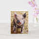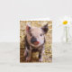 Fotografie eines bezaubernden gepunkteten Schwarz-Rosa-Ferkels in Heu, Blick nach vorn.