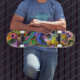 Rot, blau, gelb, lila, grün Moderne abstrakte pour Malerei Marmor Flüssigkeit Skate Board.