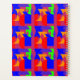 Eine lebhafte Kollision hellroter, elektrisch blauer, lebendiger grüner und lebendiger orangefarbener Formen schafft dieses auffällige abstrakte Farbblockmuster. Ideal für Statement-Geschenke - Tasse, T - Shirt, Kissen oder Wandkunst - dieses Design bringt jedem Produkt eine Menge verspielter Energie und moderne Kunst.