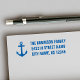 Briefmarke mit Ihrem personalisierten Familiennamen, Ihrer Anschrift oder einem anderen gewünschten Text und einem eigenen nautischen Bootsanker. Wählen Sie aus mehreren Farbtönen.