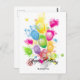 Bunte Ballons, Herzen und Punkte zum Geburtstag mit farbenprächtigen Farbspritzen. Künstlerisches Geburtstagsdesign in lila, grünen, orangefarbenen, gelben, blauen, rosa Farben. Personalisieren Sie den Text, indem Sie ihn ändern.
