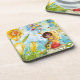 Eine skurrile und magische Illustration einer Fee unter den Blume in leuchtend farbenfroher Aquarellkunst.