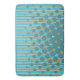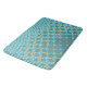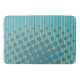 Die Badematte zeigt ein unregelmäßiges Punktmuster in den "Farben Neuseelands" in Türkis und Orange. Um eine Farbanpassung für dieses Badezimmerzubehör zu beantragen, die dem Farbschema für Ihre Badezimmerneudekoration entspricht, senden Sie bitte eine E-Mail an info@KBMD3signs.com