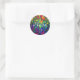 Diese farbenfrohen Rundaufkleber haben Regenbogenfarben und das Wort Peace.