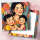 Farbenfrohe abstrakte sentimental Happy Mother's Day Aquarellkarte. Hübsche abstrakte Darstellung einer asiatischen Mutter, eines Sohnes und einer Tochter.