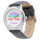 Kinder Edelstahluhr mit schwarzem Lederarmband