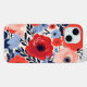 Farbenfrohe moderne Red White Blue Watercolor Floral iPhone 15 Phone Cases zeichnen sich durch ein modernes Design von roten und blauen Blumen auf einem weißen Hintergrund aus. Von Evco Studio entworfen www.zazzle.com/store/evcostudio
