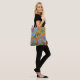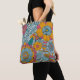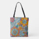 Farbenfrohe Tottasche mit Blume, Blätter und Weinreben aus heiß rosa, leuchtendem Gold, blau und aquamarin.