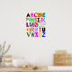 Hier ist ein lustiges Poster für das Klassenzimmer oder ein kleines Kinderzimmer. Es enthält die Großbuchstaben des Alphabets, jedes in einem einzigen Schriftart und Farbschema gerendert. Ein großartiges Geschenk für einen Vorschullehrer oder Lehrer.