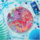Roter, lila, blauer, grüner, gelber, moderner abstrakter Marmor, der die Malzellen im Stil der Digitalkunst bestrahlt. Niedlich zum Geburtstag oder zu jeder Feier.